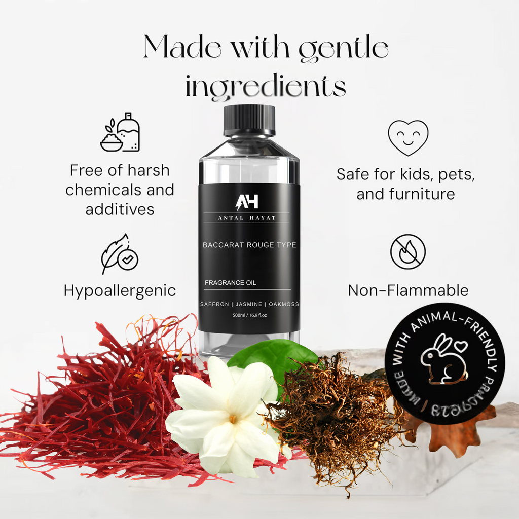 Inspired by the legendary Baccarat Rouge 540® by Maison Francis Kurkdjian, Brilliance Diffuser Oil by Antal Hayat® transforms your home into a sanctuary of modern elegance and timeless allure. This exquisite fragrance oil captures the signature sophistication of the iconic perfume now reimagined for your living space.